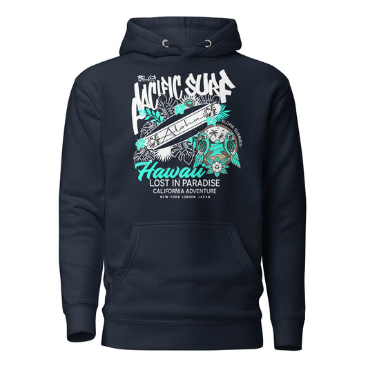 Pacific Surf Hawaii - Front Print in White & Turquoise - Women's Hoodie