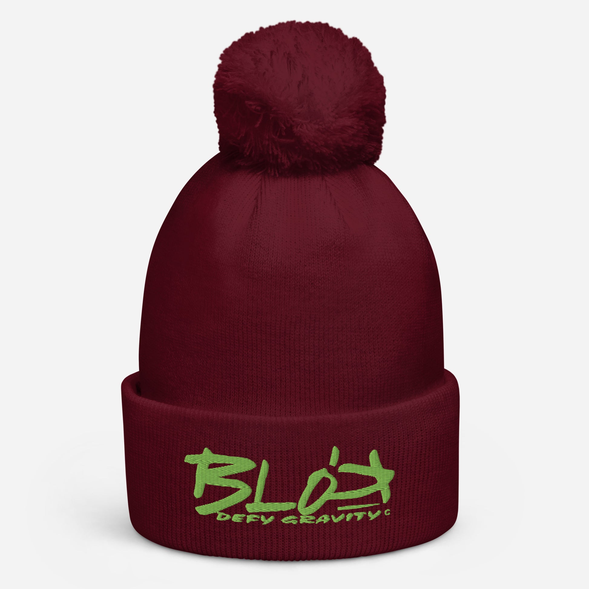 Blok Defy Gravity - Pom Pom Beanie - Lime Green Embroidery